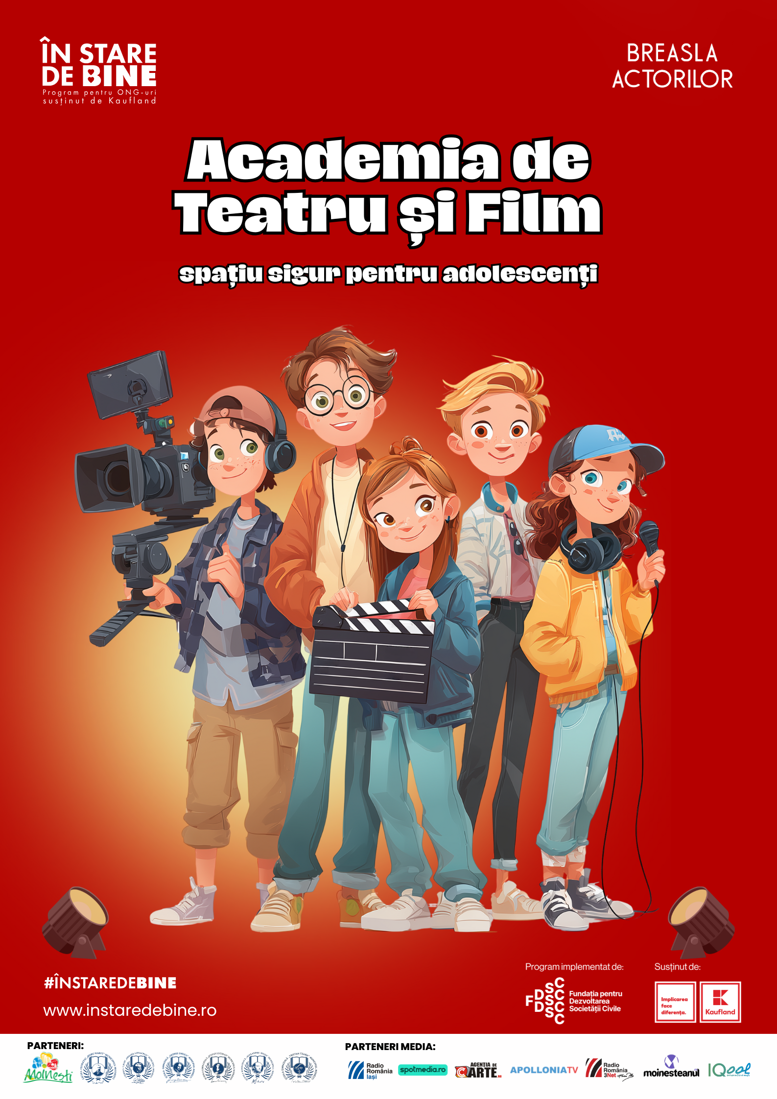 Proiectul „Academia de Teatru și Film, spațiu sigur pentru adolescenți” este derulat de Asociația „Breasla Actorilor” și finanțat prin programul În Stare de Bine, susținut de Kaufland România și implementat de Fundația pentru Dezvoltarea Societății Civile.